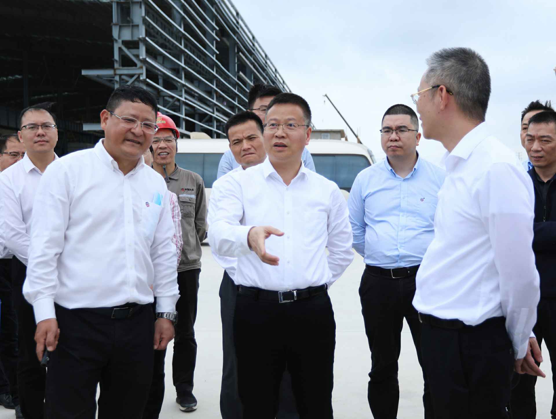 4月12日下午,市委书记谭丕创深入港口区,就推进重大项目建设进行专题调研。图为谭丕创在开云app官方在线入口-开云(中国)下游产业链——高强度耐磨新材料项目部现场调研。